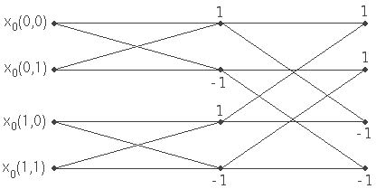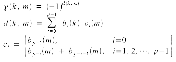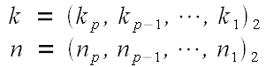 Nはサンプル点の数である。pはNの2のp乗の係数であり、bi(k)はkを2値表現にしたときの2のi乗の係数である。